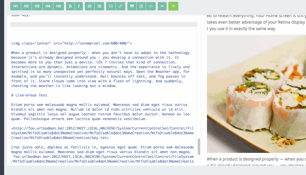 內容量多的媒體型網站,必須盡可能增加文章上稿的效率,我們特別為這個網站設計了強大的 Markdown 語法編輯器,由我們的 Windspeaker 專案改良而來,藉由簡潔的指令語法加上即時預覽,可以讓文章上稿的速度提升非常多,省去排版與貼圖的煩惱