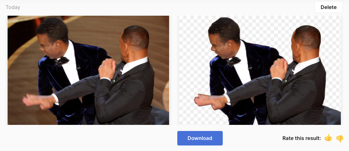 有網頁版與插件,網頁版打開後可直接將圖片拖曳至畫面,就會直接開始計算了,計算完成後,可以對結果表示喜歡或不喜歡,幫助工具修正,或直接按下載,去背png檔不會變小失真。