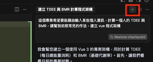 現在我要深入繼續開發,目前的計算機被嵌入在 Vue 的開始歡迎畫面中,雜訊很多,我想要一個乾淨的計算器,在頁面置中。我們可以按下右上角的 + 號,建立新對話,不受之前干擾。