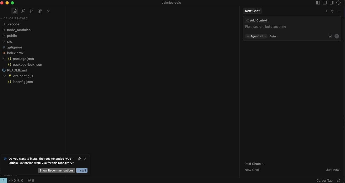 建立一個新 vue 專案,我想要寫熱量計算機,專案名稱叫 calories-calc