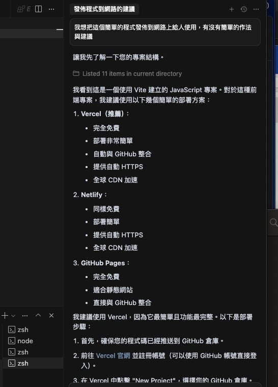如果你完成程式以後,想要發佈到網路上,也可以直接問 Cursor: