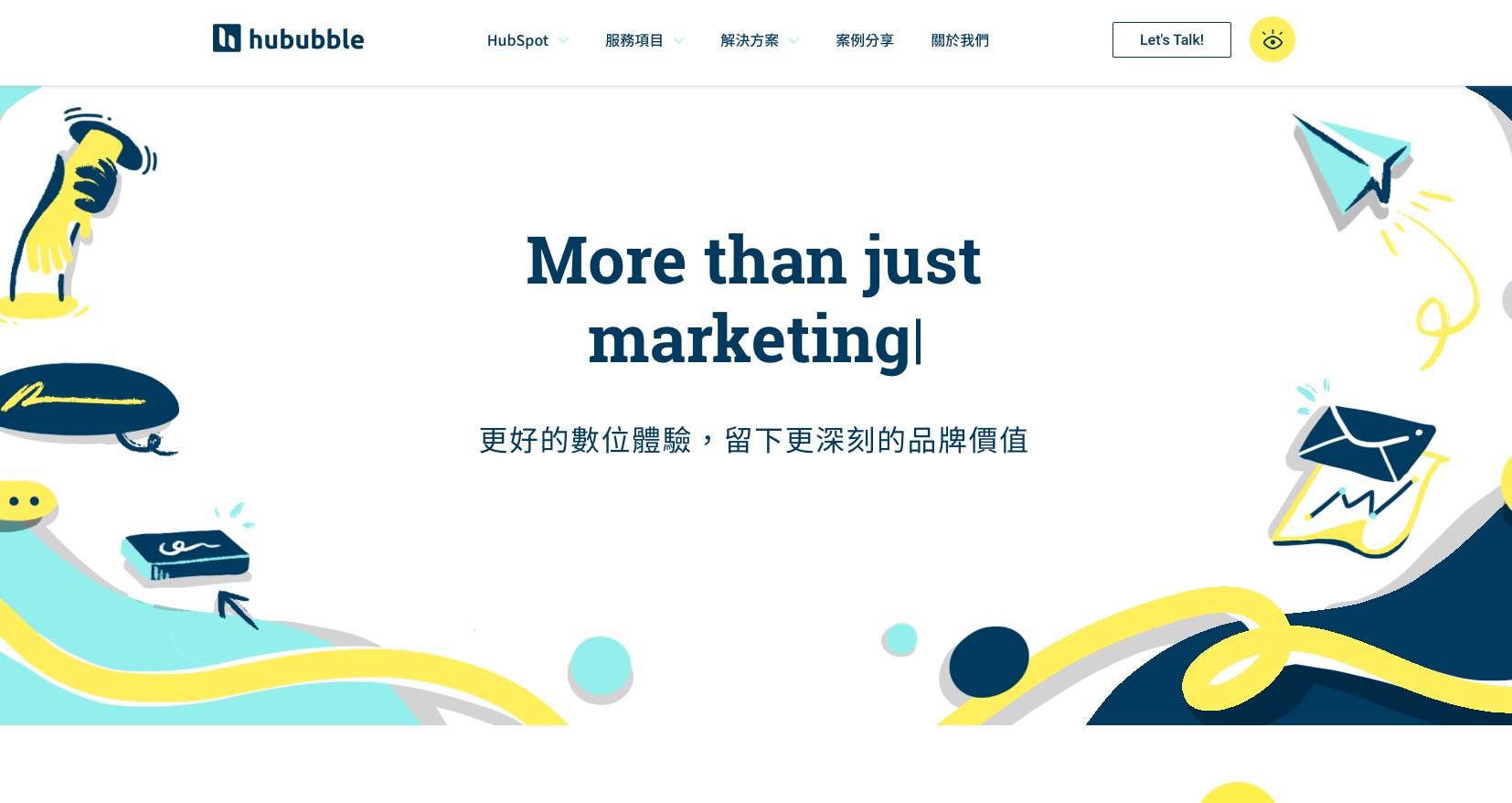 hububbleHubSpot 在台灣的鑽石級代理商,專注於提供 CRM 系統整合、AI 聊天機器人、自動化行銷與客服解決方案。透過 HubSpot CRM,企業能夠追蹤客戶行為、管理銷售流程,並透過聊天機器人自動回應客戶需求,提升服務效率。此外,hububble 還提供數據分析工具,協助企業深入了解客戶需求,制定更有效的行銷策略。
