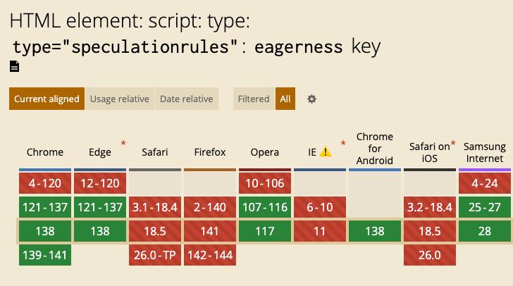 可惜的是,現階段 Speculation Rules API 僅在 Chrome 121 及更高版本中支援。